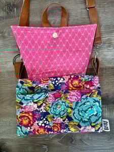 We’ve brought back a beloved number one seller in floral print and brown faux leather! This bag comes with a 54” adjustable strap, a large exterior pocket, magnetic flap closure and a child’s handle to keep your kiddos close!